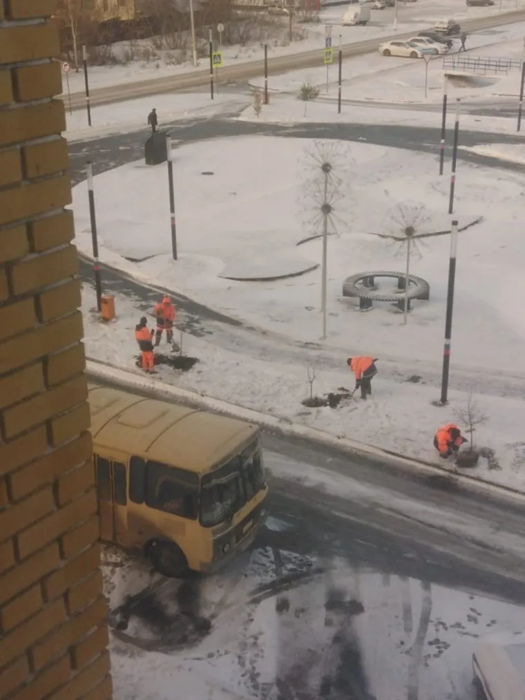 В Ишиме (Тюменская область) деревья высадили в покрытую снегом землю. Фотографию высадки жители опубликовали в соцсетях.
