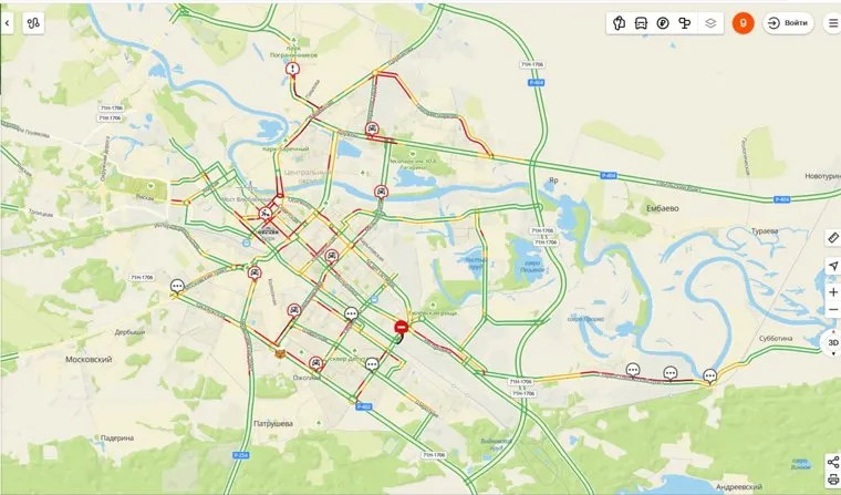В Тюмени образовались девятибалльные пробки. Скрин