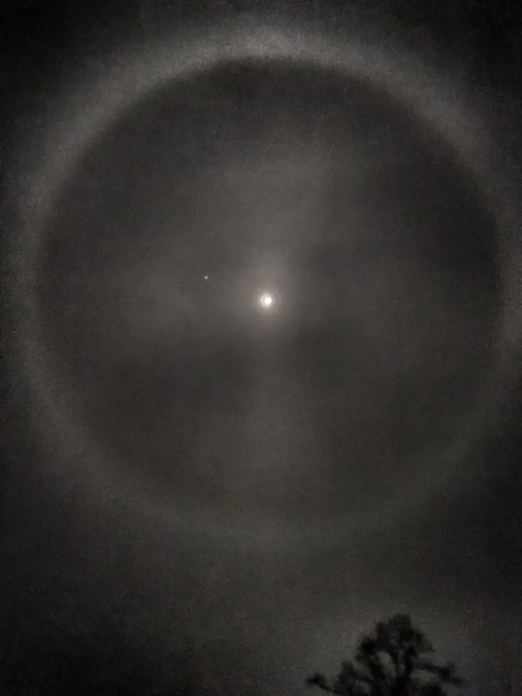 Лунное гало — это оптическая иллюзия, при которой вокруг планеты образуется яркое кольцо