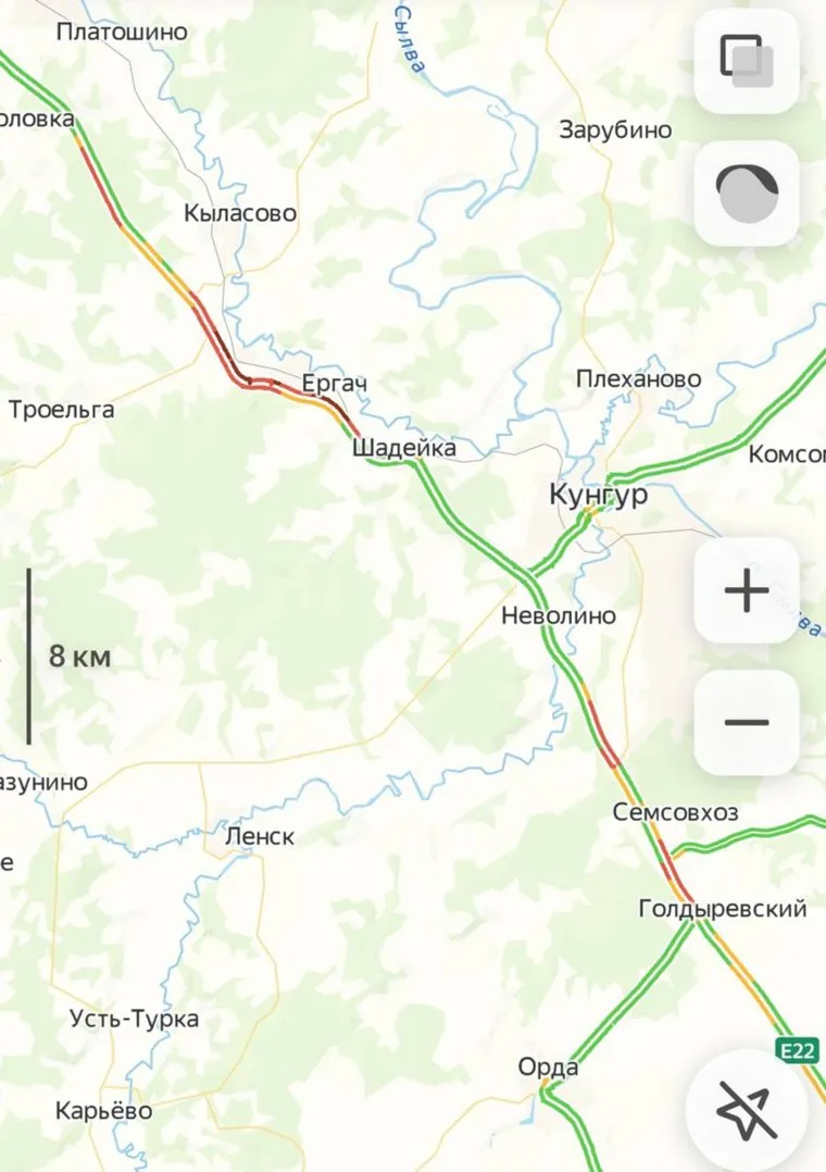 «Из-за плохой погодной обстановки образовалась пробка от поселка Шадейка до отворота на село Кыласово», — пояснили в ведомстве. По данным сервиса «Яндекс Карты», длина пробка достигла 15 км. Водители жалуются на заторы около Ергача и Орды.