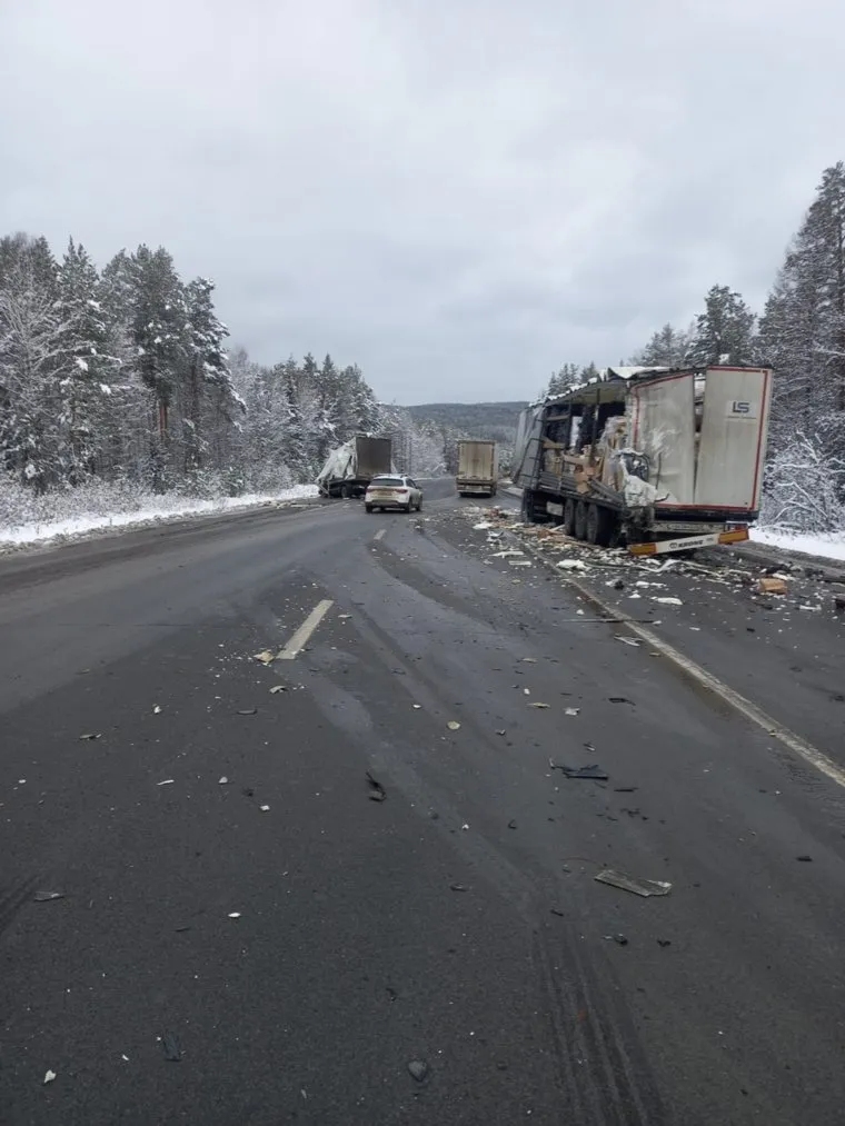На М-5 в Челябинской области произошло массовое ДТП с фурами. Фото