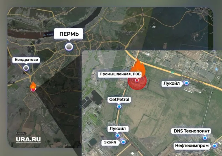 Пожар в Перми произошел на улице Промышленная, 110/2. В этом районе находятся различные производственные корпуса и склады. Также рядом расположены помещения Государственного центра Агрохимической службы. Жилые дома отделены от зоны ЧП дорогой.
