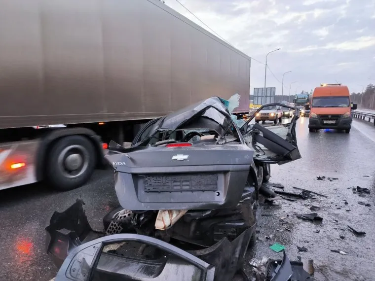 Водитель «Шевроле» доставлен в больницу. Водители грузовиков не пострадали. Движение по трассе в сторону Ялуторовска частично перекрыто. Автомобили вынуждены двигаться по одной полосе.