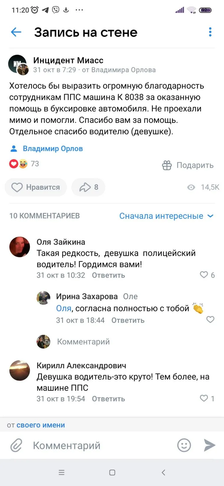 Водитель поблагодарил сотрудников ППС в социальной сети