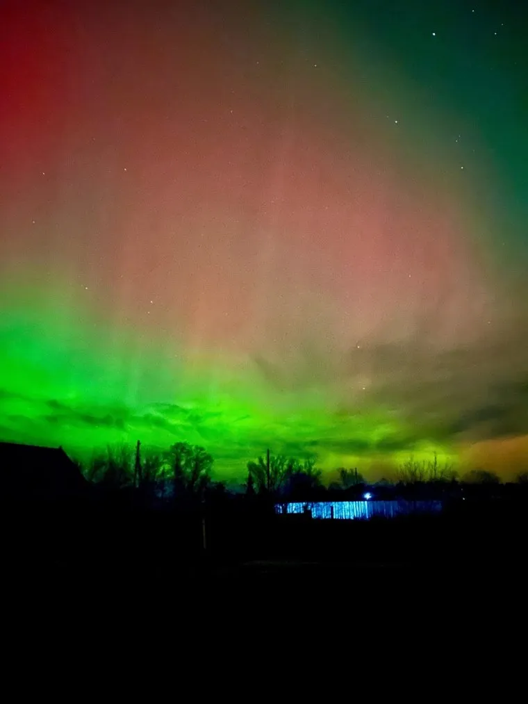 Судя по фото, сияние имеет зеленовато-красный оттенок