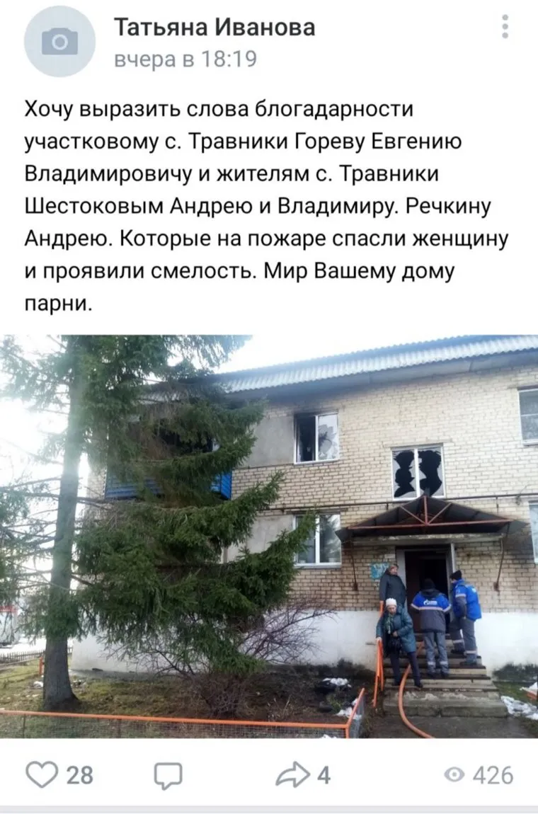 Со словами благодарности в адрес полицейского и местных жителей в соцсети обратилась пострадавшая Татьяна Иванова. За смелость, проявленную сотрудником полиции руководством областного полицейского главка, решается вопрос о поощрении.