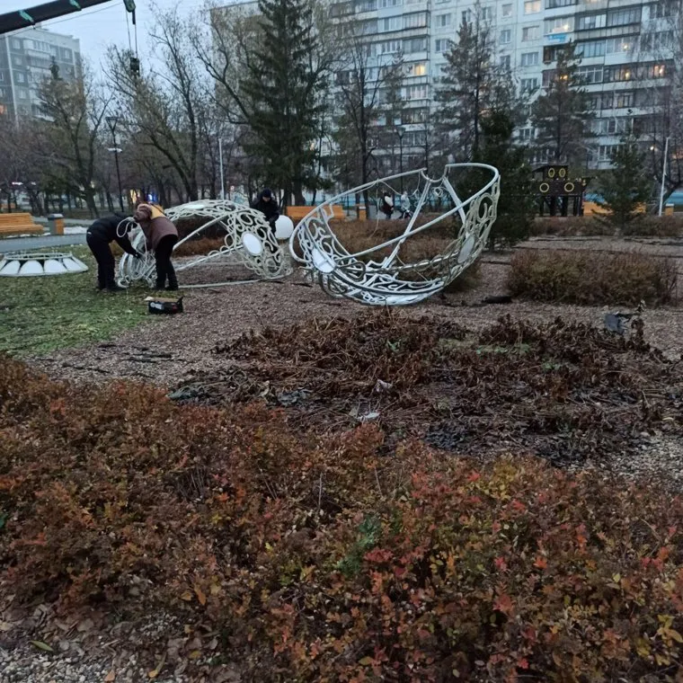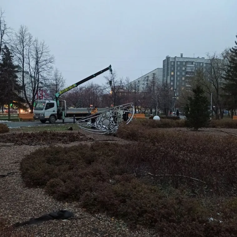 В челябинском сквере имени Чингиза Айтматова 7 ноября начался монтаж новогодних украшений. Об этом URA.RU сообщил читатель.