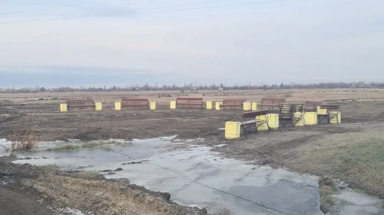 - Осень, обострение.10 ноября 2023 19:00Даже качели на площади не вызвали столько недоумения, как эти лавочки вокруг лужи грязи в степи.