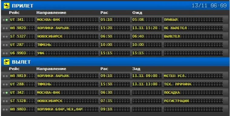 Фото: Скрин: онлайн-табло аэропорта Нижневартовска