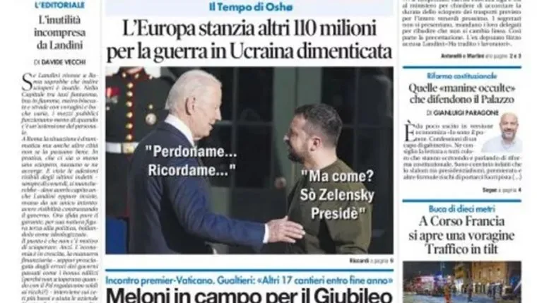 Итальянское издание Tempo высмеяло плохую память президента США Джо Байдена во время встречи с лидером Украины Владимиром Зеленским. Шутка появилась на первой полосе газеты.