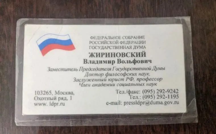 В Тюмени продают визитку Жириновского за 10 миллионов рублей. Фото