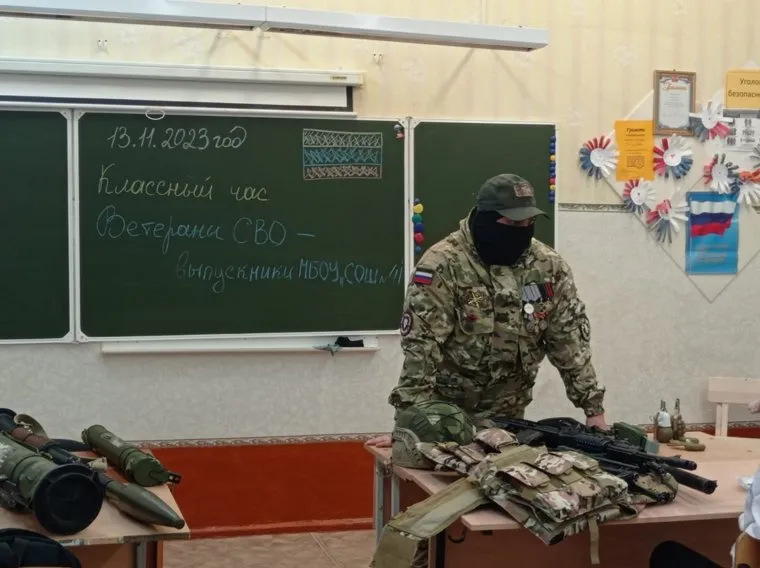 «Участник СВО с позывным „Ходжер“, награжденный медалью „За отвагу“, провел классный час с учащимися школы №41. В ходе встречи боец рассказал о буднях военнослужащих и ответил на вопросы школьников», — сообщается в группе центра. Также участник спецоперации показал ребятам автоматы, гранатометы и другое военное снаряжение. Все желающие смогли сфотографироваться с бойцом вместе с оружием.