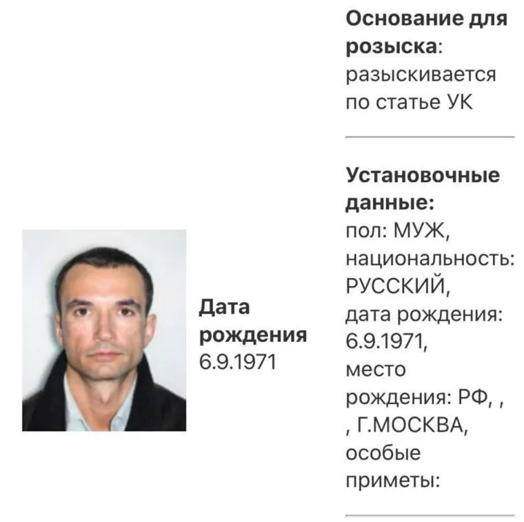 Основанием для розыска является уголовная статья. По данным telegram-канала Shot, его объявили в федеральный розыск за причинение особо крупного имущественного ущерба.