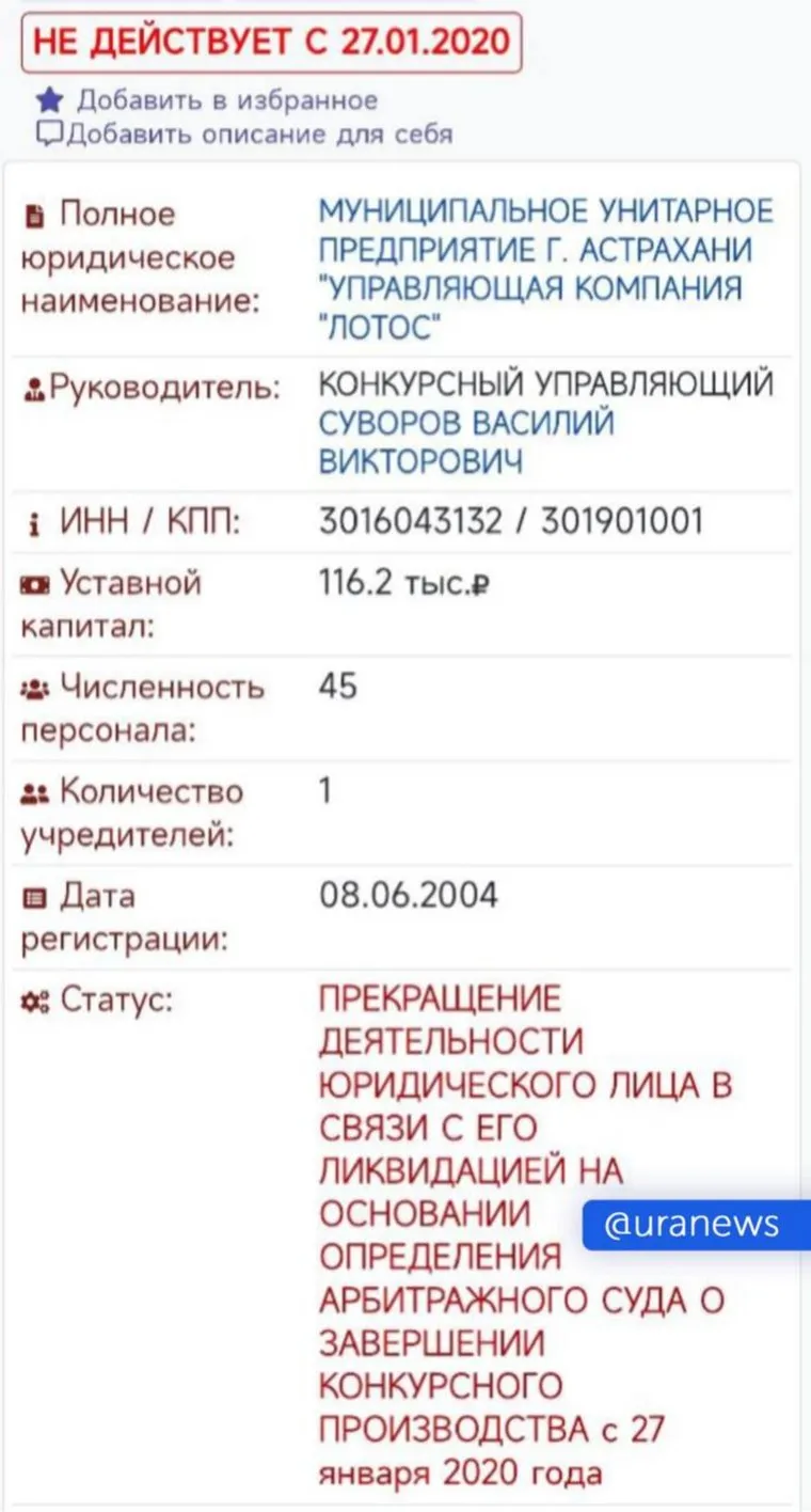 Агентство выяснило, что УК «Лотос», которая ранее обслуживала дом, перестала действовать с конца января 2020 года. Кроме того, компания, занимающаяся зданием сейчас, не отвечает на звонки.