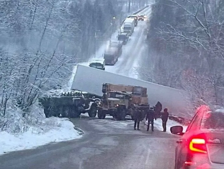 В городе Кизеле Пермского края из-за ухудшения погодных условий на дорогах возник транспортный коллапс. Движение большегрузов осложнили снегопад и похолодание. Так, одна из фур вылетела на обочину, частично перегородив проезжую часть. Очевидцы делятся случившимся в telegram-канале «Слуховой анализатор».