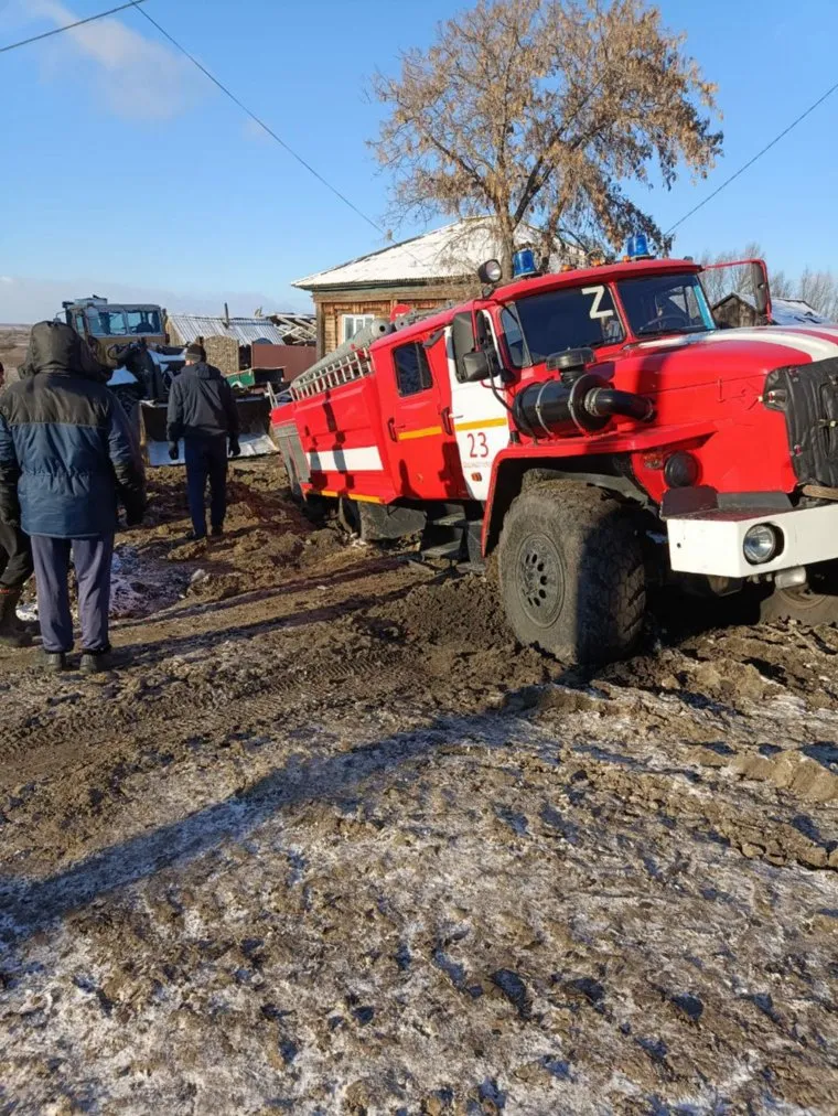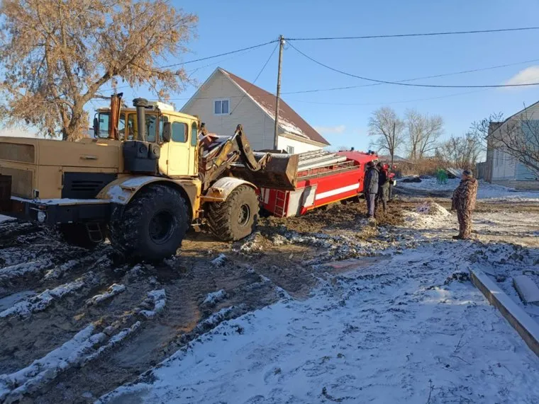В Курганской области пожарная машина на сутки увязла в траншее. Фото, видео