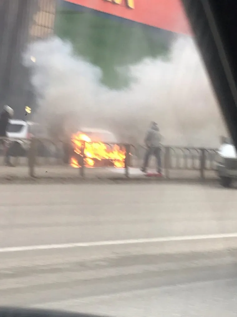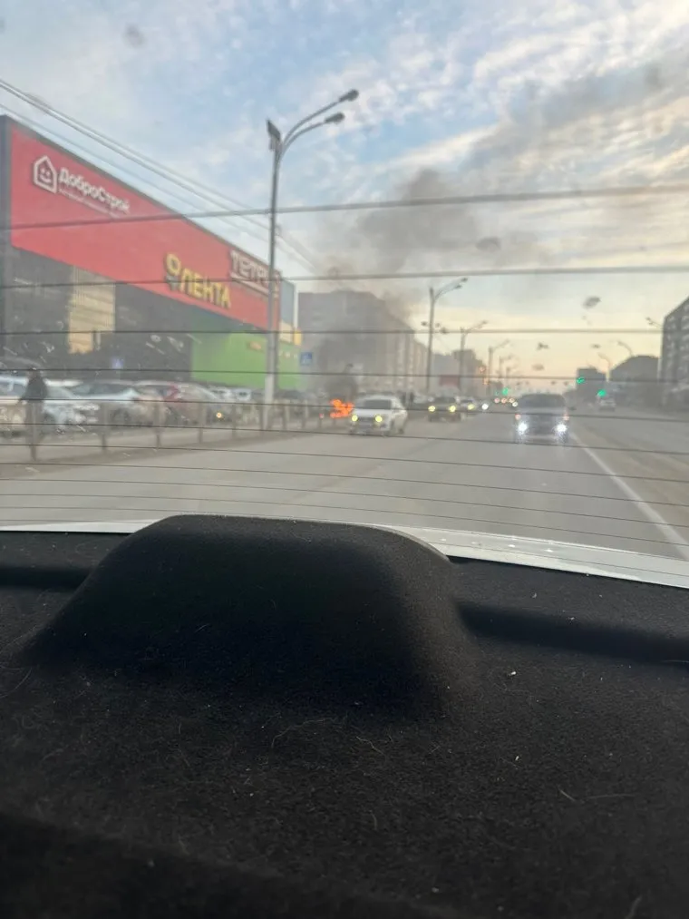 Машина загорелась на стоянке торгового центра «Тетрис»