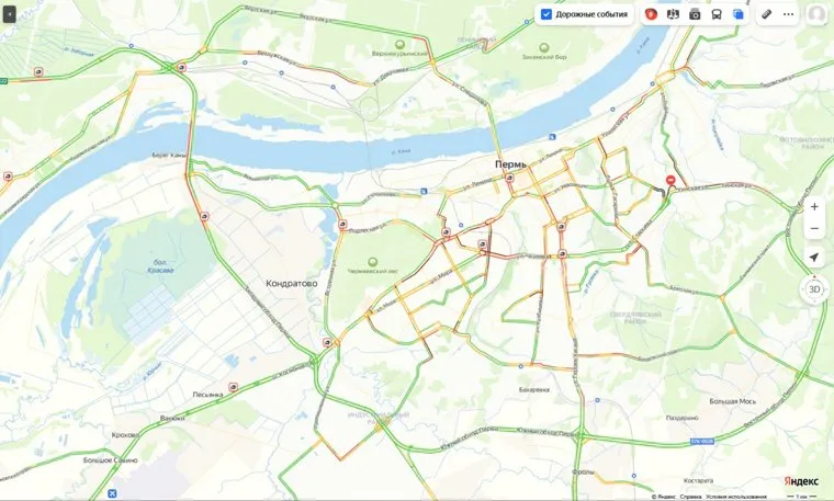 Фото: Скрин сервиса «Яндекс. Пробки», yandex.ru/maps/50/perm/probki
