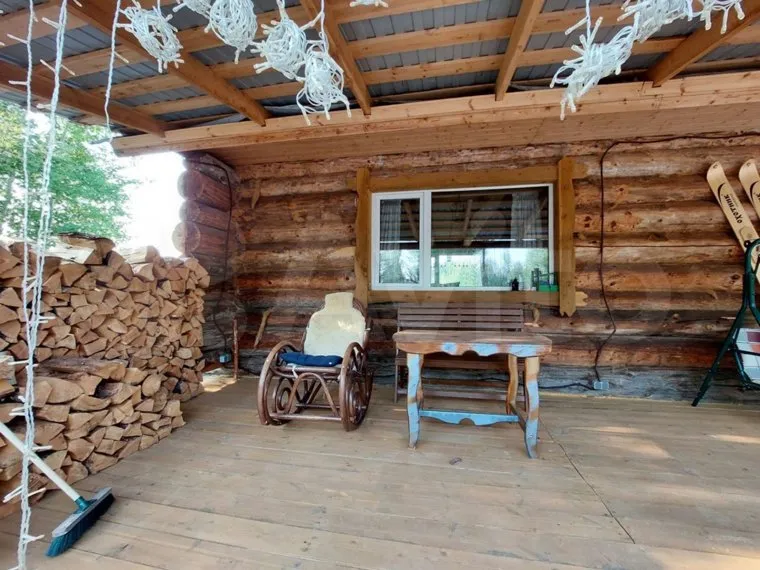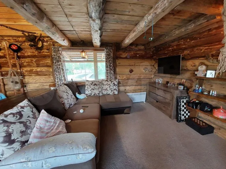 Сама дача построена из кедровых бревен, у нее два этажа. Дом продают вместе с мебелью из дерева, а внутри установлена чугунная печь и сделан теплый пол. Кроме бани, на участке есть собственный пруд для разведения рыбы.