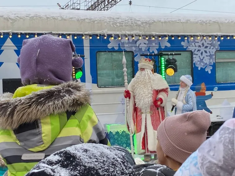 «Поезд прибыл без опозданий, ровно в 10 часов. Посмотреть на Деда Мороза пришли сотни человек, в основном родители с детьми. На станции толкотня, но настроение у всех приподнятое», — уверил собеседник агентства.