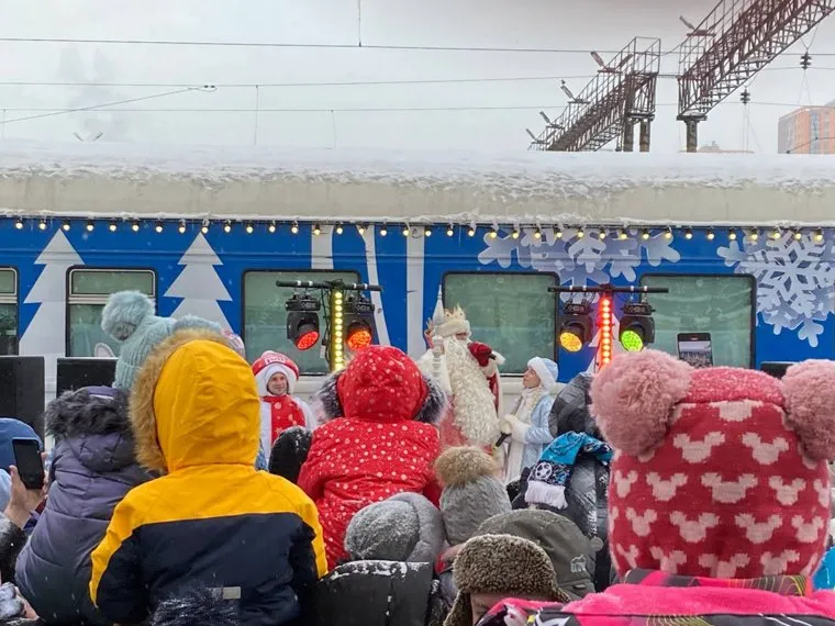 На железнодорожный вокзал Екатеринбурга прибыл поезд Деда Мороза, который путешествует по городам России. Встретить главного зимнего волшебника на перроне собрались сотни человек, рассказал читатель URA.RU.