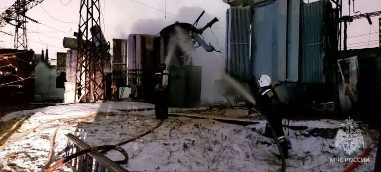 Сотрудники МЧС тушат горение масляного трансформатора на площади 40 квадратных метров