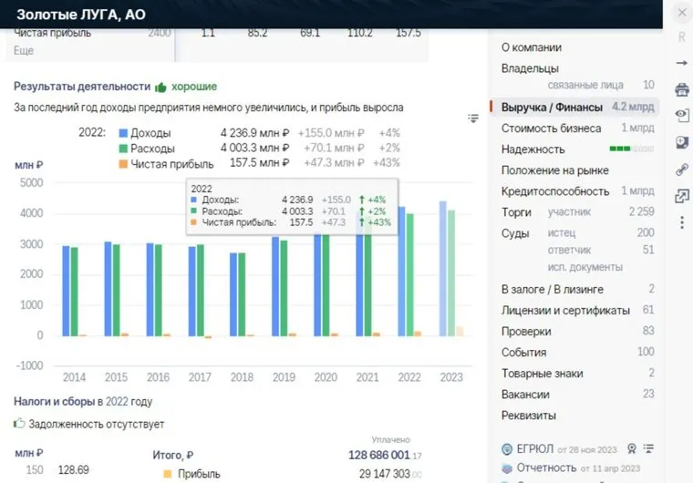 Еще один молочный магнат Тюменской области — компания «Золотые Луга». Кроме одноименного бренда, производителю принадлежат марка «Ситниковское» и линейка кисломолочной продукции «Живи здорОво». В банкротных историях и финансовых разбирательствах эта компания замечена не была. Более того, система СБИС сообщает, что у «Золотых Лугов» на данный момент нет никаких финансовых рисков, а чистая прибыль в 2022 году выросла на 47% и составила 157,5 млн рублей.