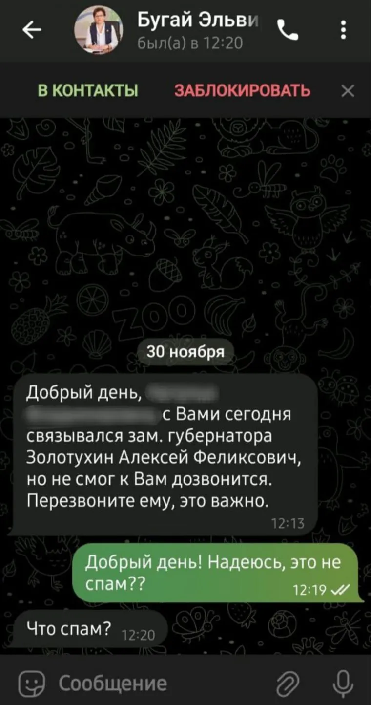 «Уважаемые жители Нефтеюганска! Мошенники вновь запустили массовую рассылку. Будьте бдительны и осторожны! В Telegram создан очередной фейковый аккаунт с моим именем, с которого злоумышленники ведут диалог от моего лица», — указано в посте Эльвиры Бугай.