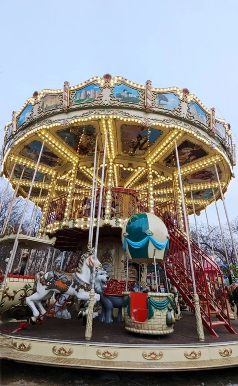 «На Цветном бульваре устанавливается новая двухъярусная „роскошная карусель“ итальянского производства. Общая стоимость вложенных инвестиций составила около 100 млн. рублей. Работы еще в самом разгаре. Впереди проведение испытаний, проверка комиссией по безопасности, техническое освидетельствование и регистрация в Гостехнадзоре. Высота карусели 11 метров, диаметр — 10 метров. Карусель имеет два яруса. На первом и на втором ярусе расположены фигурки лошадок, животных и карет для комфортного размещения желающих прокатиться», — указано в публикации городского парка культуры и отдыха Тюмени.