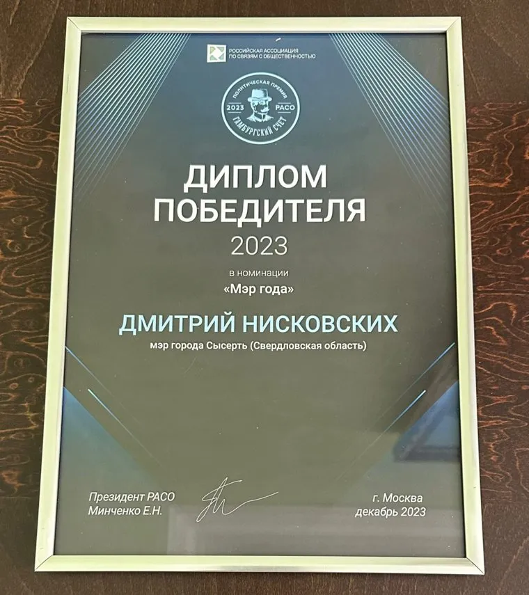Награждение прошло в рамках политической премии «Гамбургский счет». Главную награду в номинации «Мэр года» Нисковских разделил с коллегой из Иркутска Русланом Болотовым.