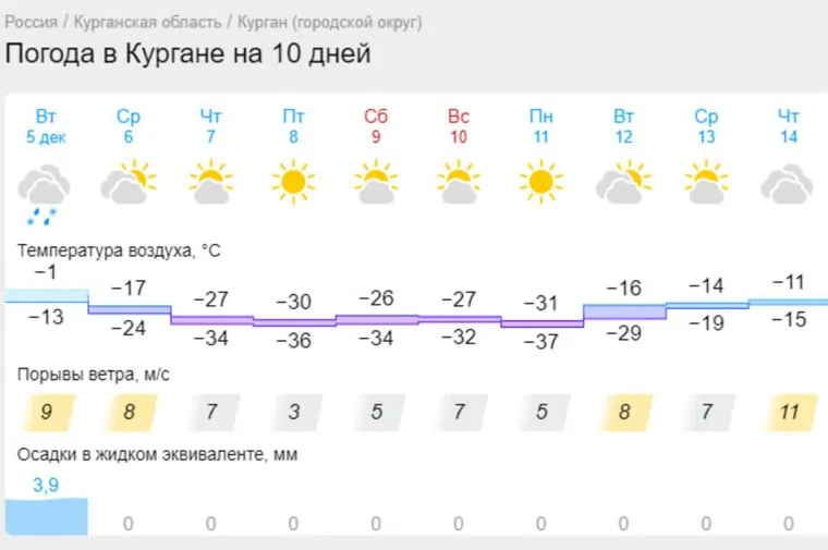 Фото: Скрин: сайт Gismeteo; https://www.gismeteo.ru/weather-kurgan-4569/10-days/