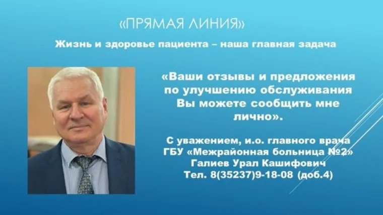 На прямой линии с главврачом можно не только рассказать о проблеме, но и оставить отзывы и предложения по улучшению работы больницы. Врач-невролог из Оренбургской области Урал Галиев возглавил межрайонную больницу №2 в сентябре 2023 года . Всего в этом году в регионе сменили больше десяти руководителей медицинских учреждений.
