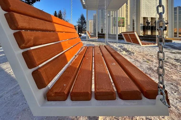 В Кургане скандальные качели с площади установили возле филармонии. Фото, видео