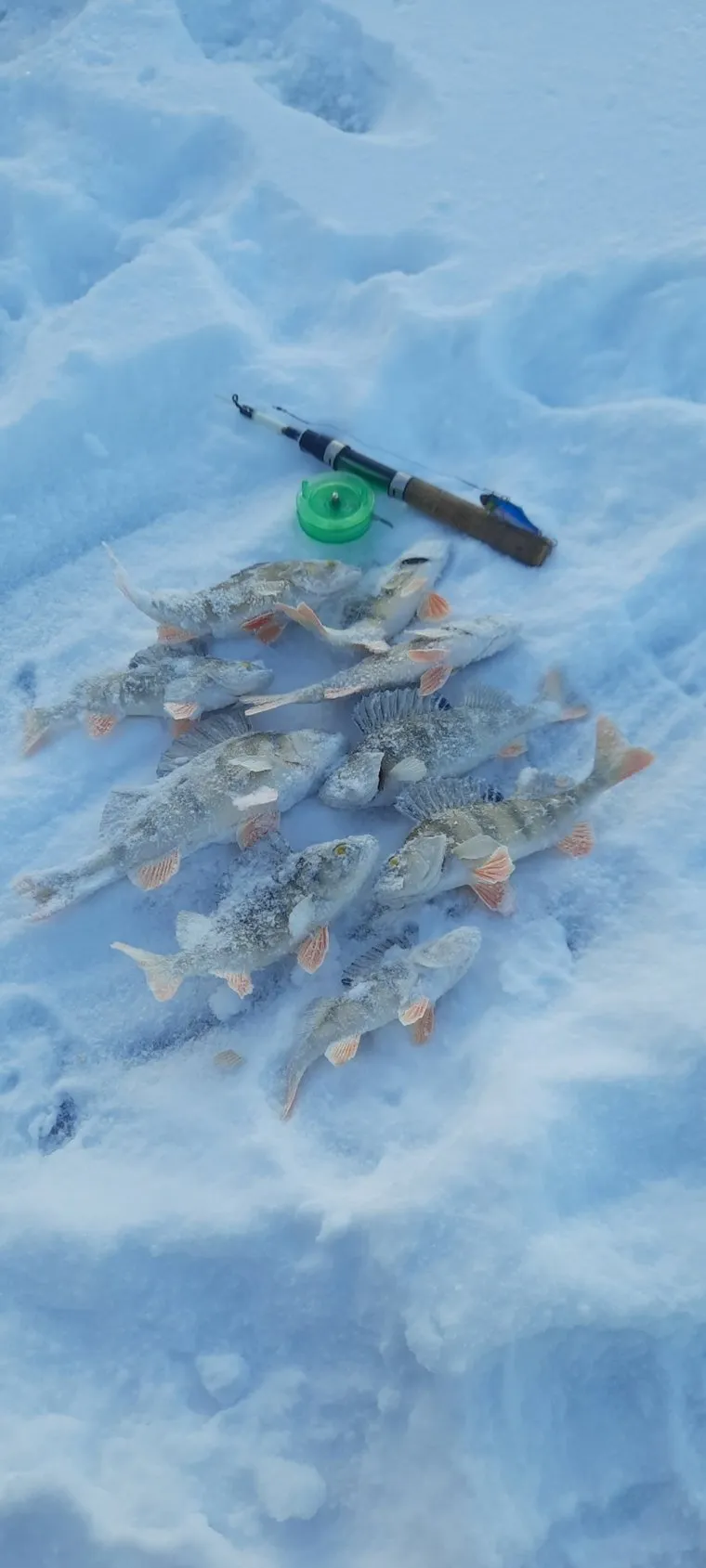 «Озеро Андреевское, за бортом -36 градусов. Два рыбака на льду в поиске поклевок и рыбки. Можно сказать это была спонтанная рыбалка. Списались, собрались, поехали, побегали по озеру. Оказалось, что мы не одни такие, но ушли мы последние, прям до талого искали!» — написал тюменец Максим в группе «Рыбалка в Тюменской области».