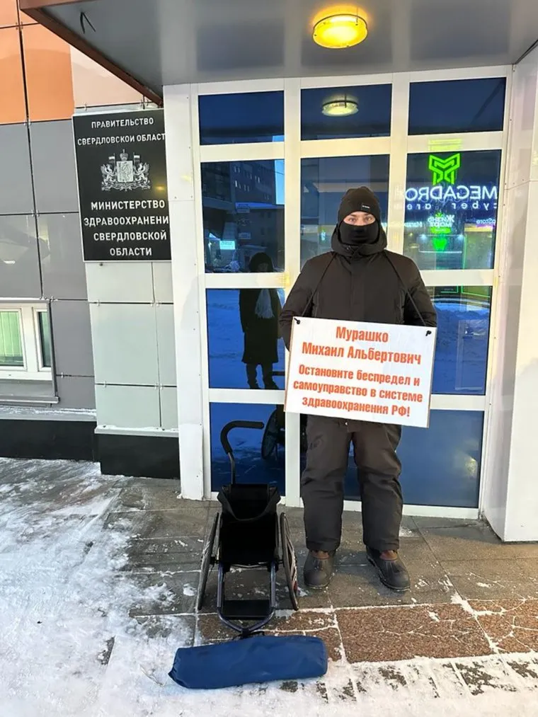 В Екатеринбурге мужчина объявил голодовку у здания минздрава. Фото