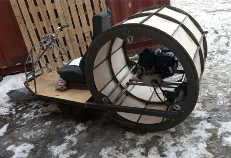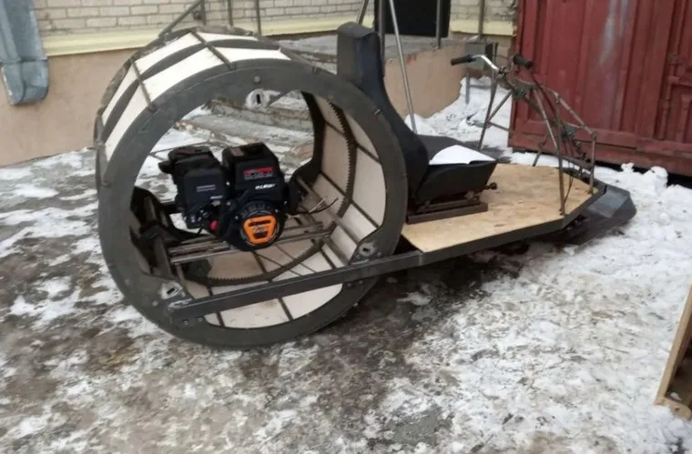 Житель Челябинска создал снегоход с одним колесом. Фото, видео