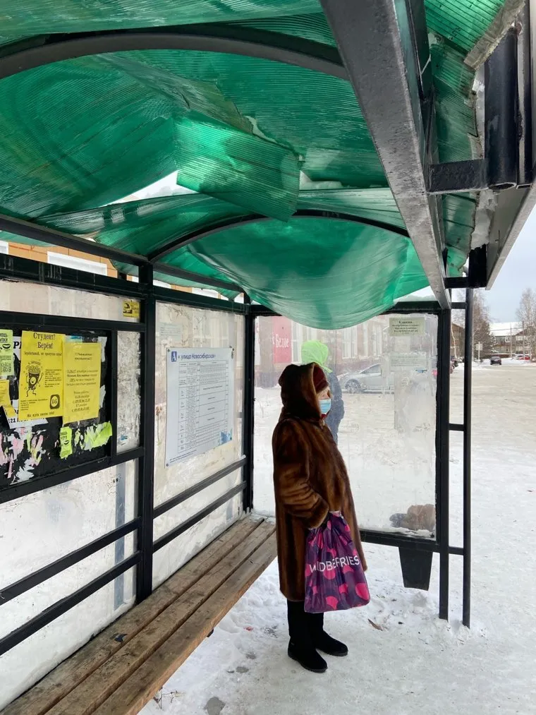Житель Нягани (ХМАО) пожаловался на проломленную крышу остановки «Сибиряк». Он просит принять меры по благоустройству остановок.