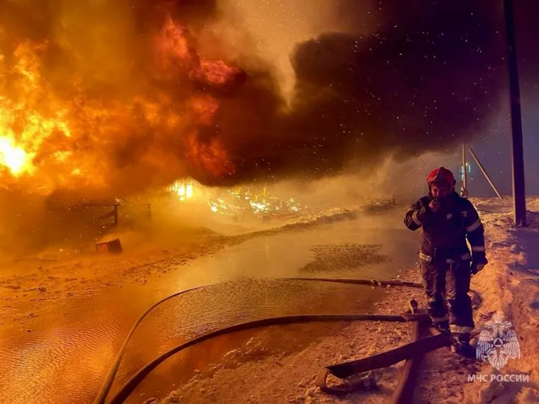 В ЯНАО ночной пожар охватил «деревяшку». Фото