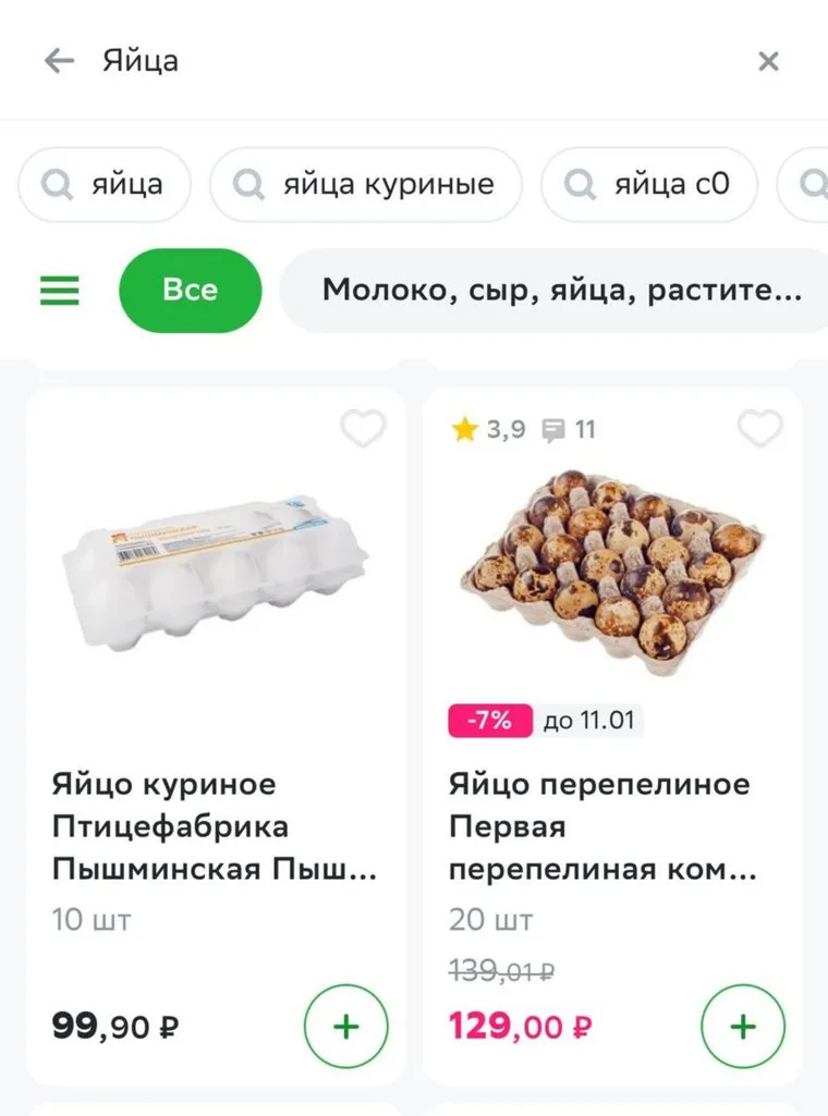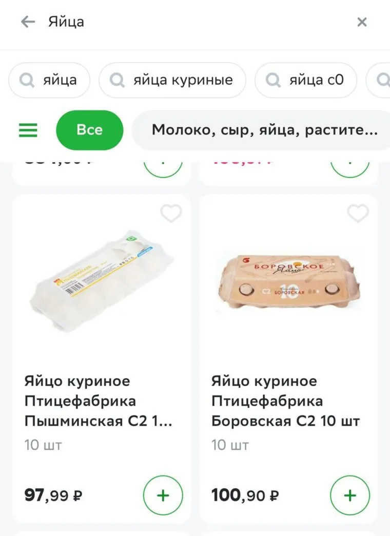 «Яйцо куриное, птицефабрика „Пышминская“. С2, 10 шт. Цена — 97 рублей, 99 копеек», — такая цена представлена на одном из онлайн-сервисов по доставке продуктов.