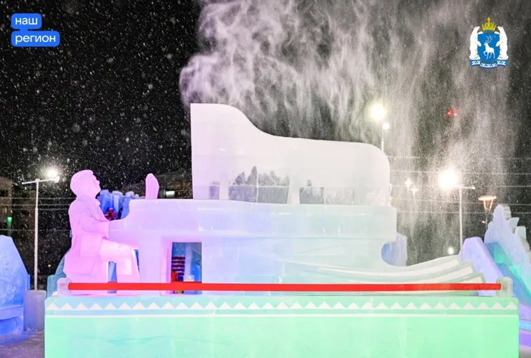 Масштабная ледяная фигура изображает музыканта Дениса Мацуева за роялем. Установили ее у главного концертного зала Салехарда, где ожидается одно из главных культурных событий Ямала — Международный конкурс молодых музыкантов «Симфония Ямала», сообщается в аккаунте окружного правительства.