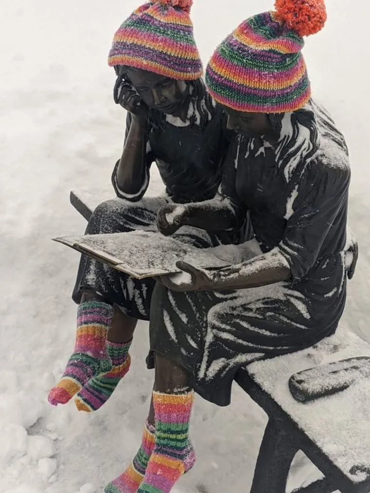 В Бажовском парке Златоуста (Челябинская область) скульптуры читающих детей и животных рядом с ними одели в теплые одежды. Как URA.RU рассказала администратор туробъекта Надежда Бутенко, шерстяные вещи сотрудники вяжут весь декабрь.