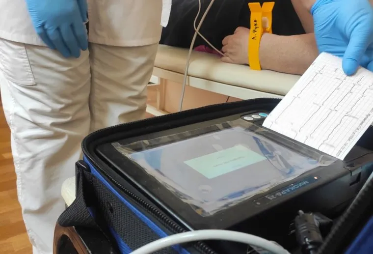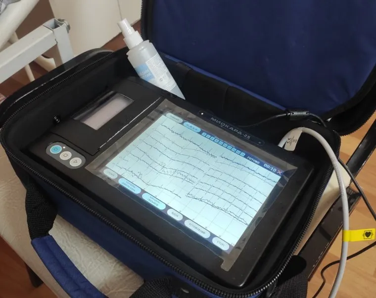 «На апробацию в районную больницу поступили два электрокардиографа экспертного класса „Миокард-25“. Оборудование только вышло в производство, но в нашу больницу экспертную разработку доставили одной из первых. Оборудование снимает кардиограмму и печатает результаты в реальном времени, само делает описание по снятым показаниям с точностью, близкой к 100%. Разработка снимает нагрузку с терапевтов и врачей функциональной диагностики, что позволяет им принимать больше пациентов», — сообщили URA.RU в больнице.