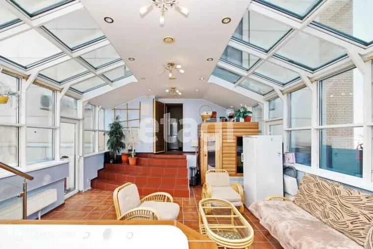 Четырехкомнатное жилье на последнем этаже в центре Сургута продают почти за 18 миллионов рублей. «Особенностью квартиры является наличие зимнего сада (41 кв. м) и собственной террасы на крыше дома», — говорится на сайте «Дом клик». Потолок комнаты с садом прозрачный — больше чем наполовину он состоит из окон.