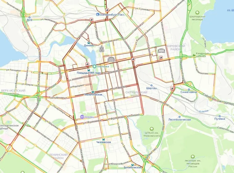 Екатеринбург встал в 10-балльные пробки. Скрин