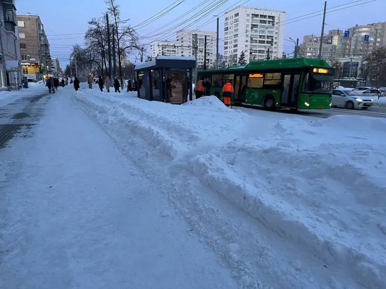 «На остановке 1-я Эльтонская из-за наката образовалась значительная колея. Сама площадка и карман для автобусов тоже не очищены. Из-за этого во время высадки пассажиров полностью блокируется проезд. Автобусы №2 ходят часто, но почти все переполнены», — сообщили URA.RU в правительстве.