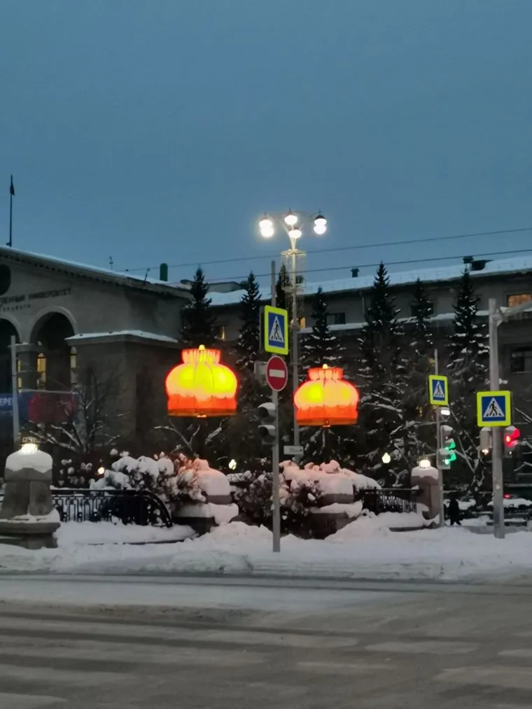 Жители Екатеринбурга, которых беспокоило, что напротив «Урал. Оперы. Балета» до Нового года не появилась легендарная работа художника Тимофея Ради, могут успокоиться. Оранжевые абажуры вновь красуются на фонарях на проспекте Ленина, заметило URA.RU.