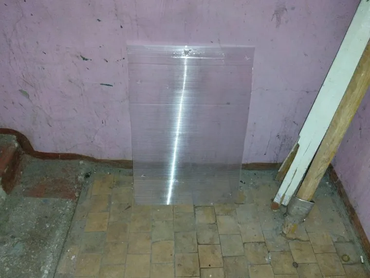 Работа управляющей компании ограничилась установкой листа поликарбоната на окнах подъезда