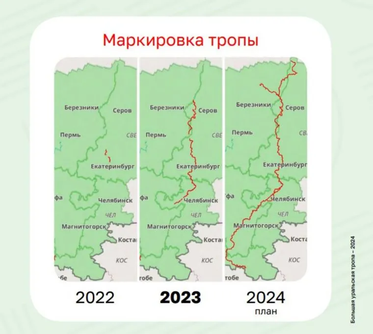 Внимание уделят и развитию сети туристических информационных центров, установке навигации и информационных стендов, развитию сети радиальных маршрутов. В настоящий момент длина Большой уральской тропы составляет 5500 км и затрагивает пять регионов: Пермский край, Свердловскую, Челябинскую, Оренбургскую области и Башкортостан.