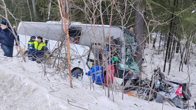 В Свердловской области автобус с детьми слетел с трассы. Фото