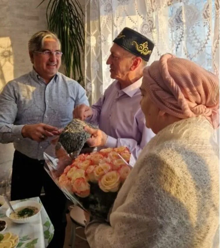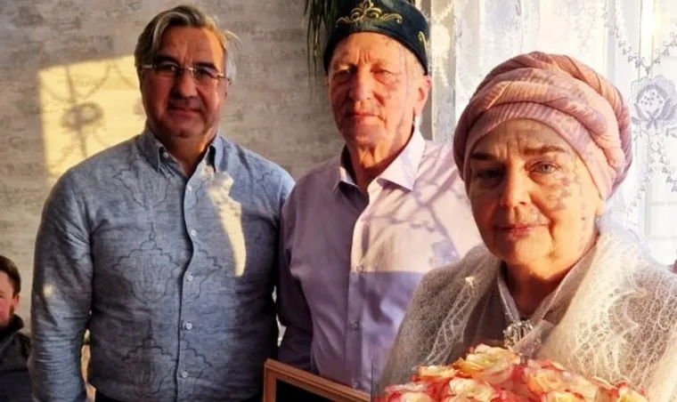 «Погорельцы татарского села Юлдус — имам мечети Ахмадулла хазрат Хабибуллин и его жена отметили новоселье и золотую свадьбу. Почетным гостем торжества стал заместитель Премьер-министра Республики Татарстан Василь Шайхразиев. Он поздравил юбиляров и пожелал долгих лет совместной жизни и подарил памятный подарок», — сообщили в конгрессе татар.